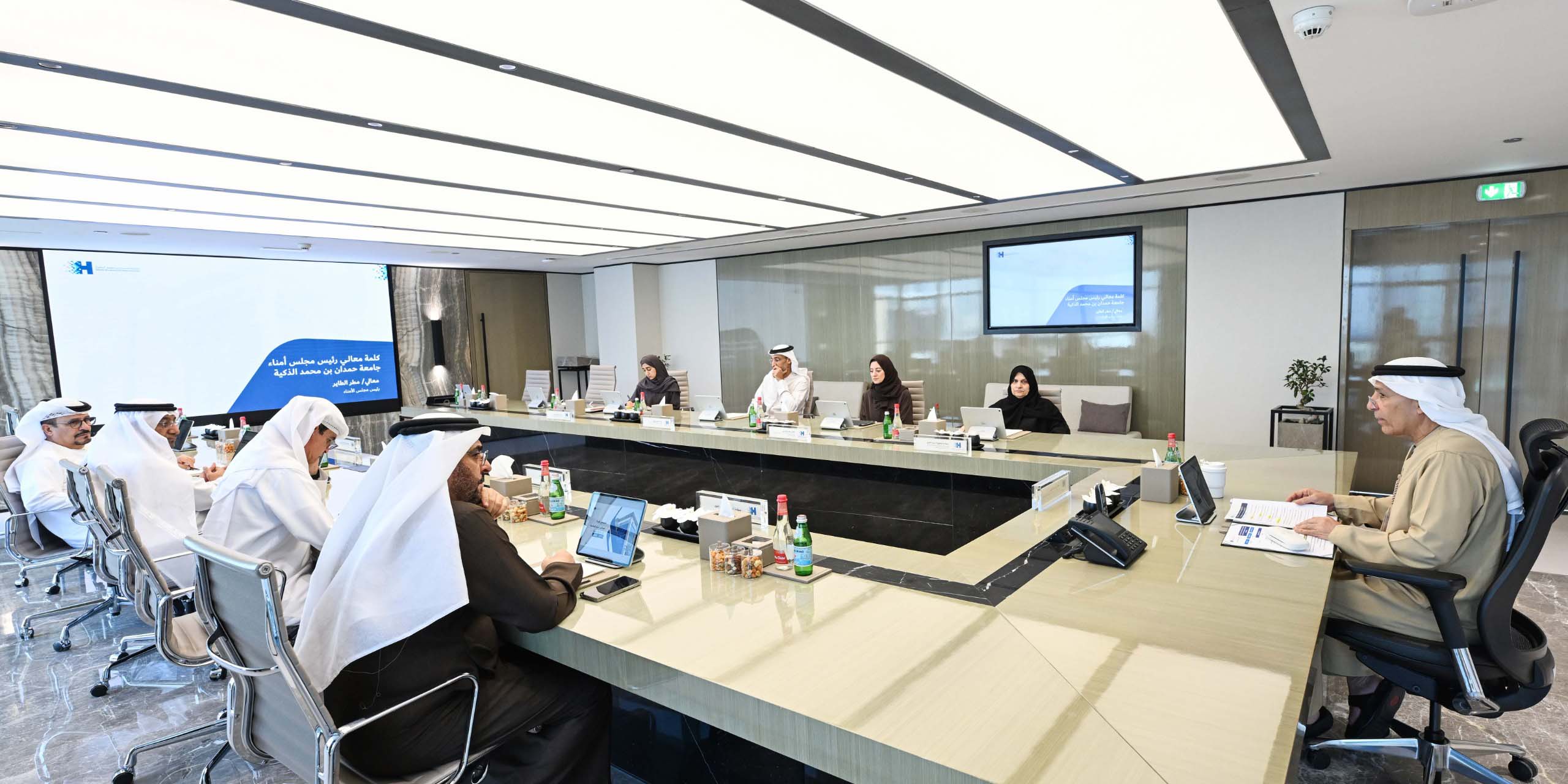 عقد مجلس أمناء جامعة حمدان بن محمد الذكية اجتماعه الثالث للعام الأكاديمي 2025/2026، برئاسة معالي مطر الطاير، رئيس مجلس أمناء الجامعة، وبحضور أصحاب المعالي والسعادة أعضاء المجلس، جرى خلاله استعراض أبرز المستجدات الاستراتيجية، ومستوى التقدم في تنفيذ القرارات السابقة، في إطار التزام الجامعة بتعزيز موقعها كمؤسسة أكاديمية رائدة في التعليم الذكي والابتكار.
